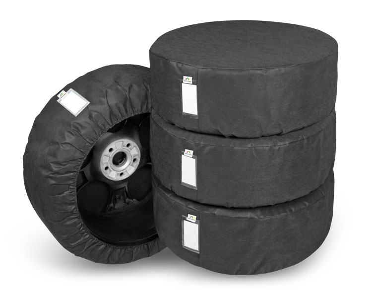 Komplet pokrowców ochronnych na koła/opony 4xSEASON klasy BASIC - praktyczne pokrowce do sezonowego przechowywania opon i kół samochodowych w garażu, w zakładzie mechaniki samochodowej, w serwisie samochodowym itp. (szczególnie kół z felgami aluminiowymi, które skutecznie chroni przed zarysowaniem).