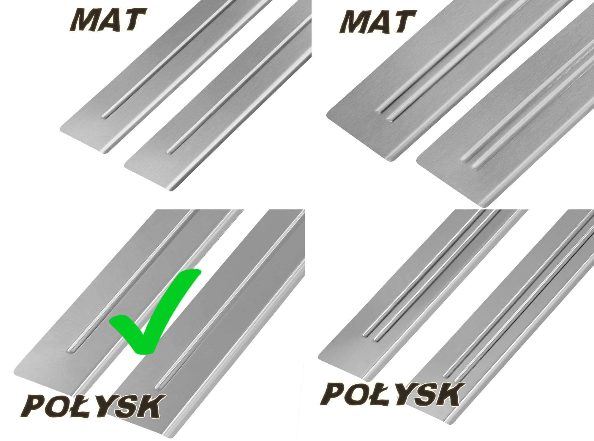 Oferowane przez nas listwy ochronne na progi nie tylko są niezwykle funkcjonalne, ale również pełnią rolę dekoracyjną. Tworzą ekskluzywny efekt wizualny, a co najważniejsze stanowią skuteczną ochronę przed uszkodzeniami mechanicznymi oraz korozją. Wszystkie nasze nakładki są wycinane bardzo dokładnym laserem światłowodowym najnowszej generacji, co gwarantuje idealne dopasowanie do kształtu progów.