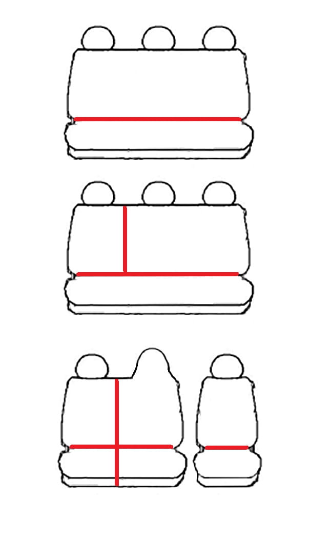 2. rząd: kanapa 3-miejscowa z dzielonym oparciem 2/3, siedzisko w całości (1x pokrowiec na siedzisko, 2x pokrowiec na oparcie, 3x zagłówek)