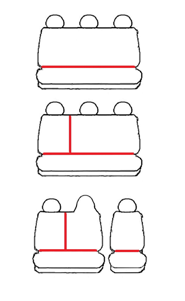3. rząd: kanapa 3-miejscowa oparcie i siedzisko w całości (1x pokrowiec na siedzisko, 1x pokrowiec na oparcie, 3x zagłówek)