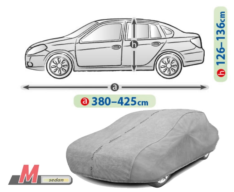 Materiał z którego wykonany jest produkt, dopasuje się zarówno do nieco mniejszego, jak i większego samochodu o podobnym kształcie i wymiarze nie przekraczającym podanego powyżej obwodu.
