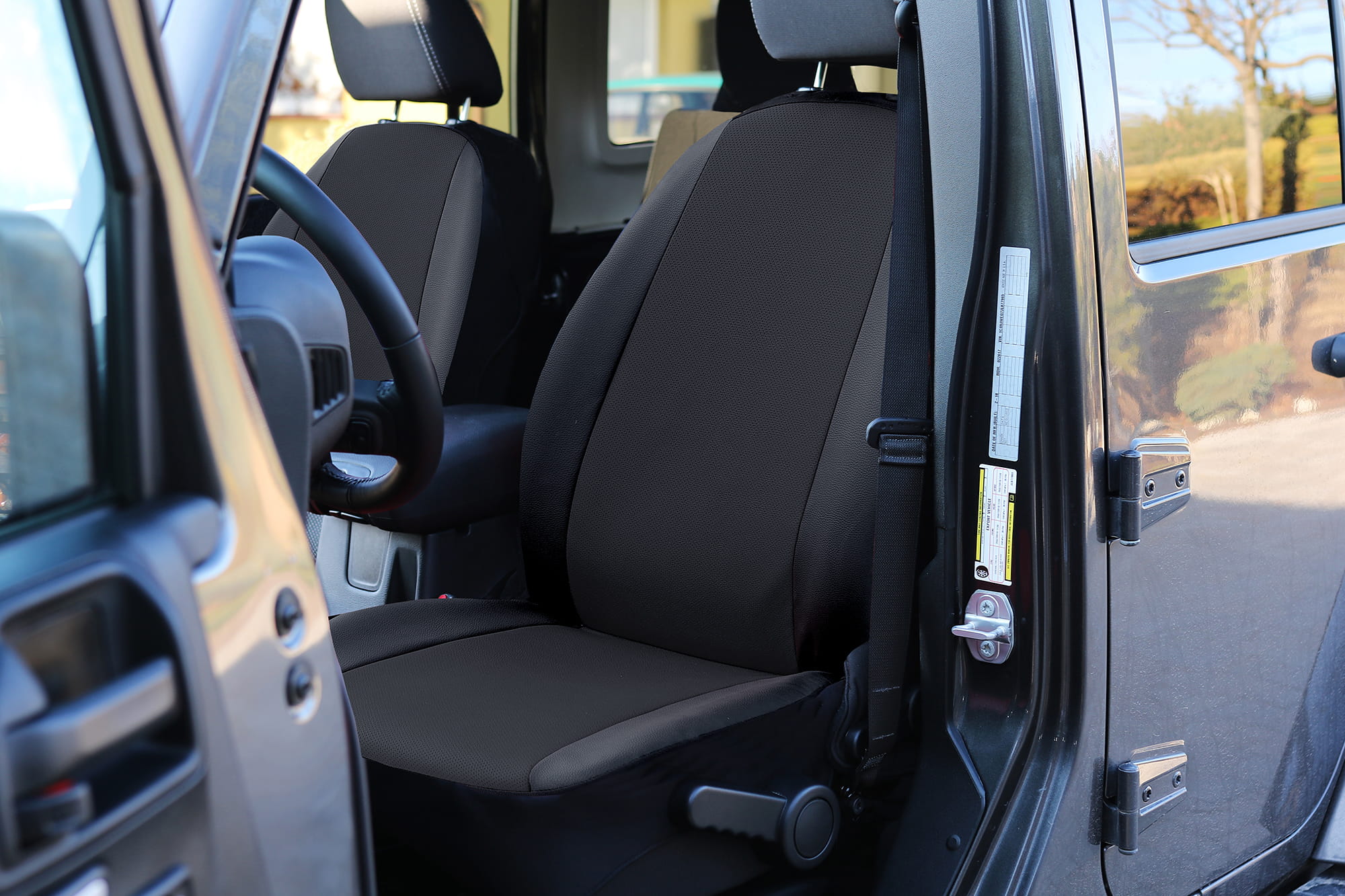 Pokrowce zakrywają fotele w całości, zarówno część frontowa, boki oraz plecy foteli są w 100% przykryte materiałem. Dzięki temu rozwiązaniu oryginalna tapicerka foteli jest ochroniona przed zniszczeniem oraz zabrudzeniami w najbardziej narażonych na to miejscach.