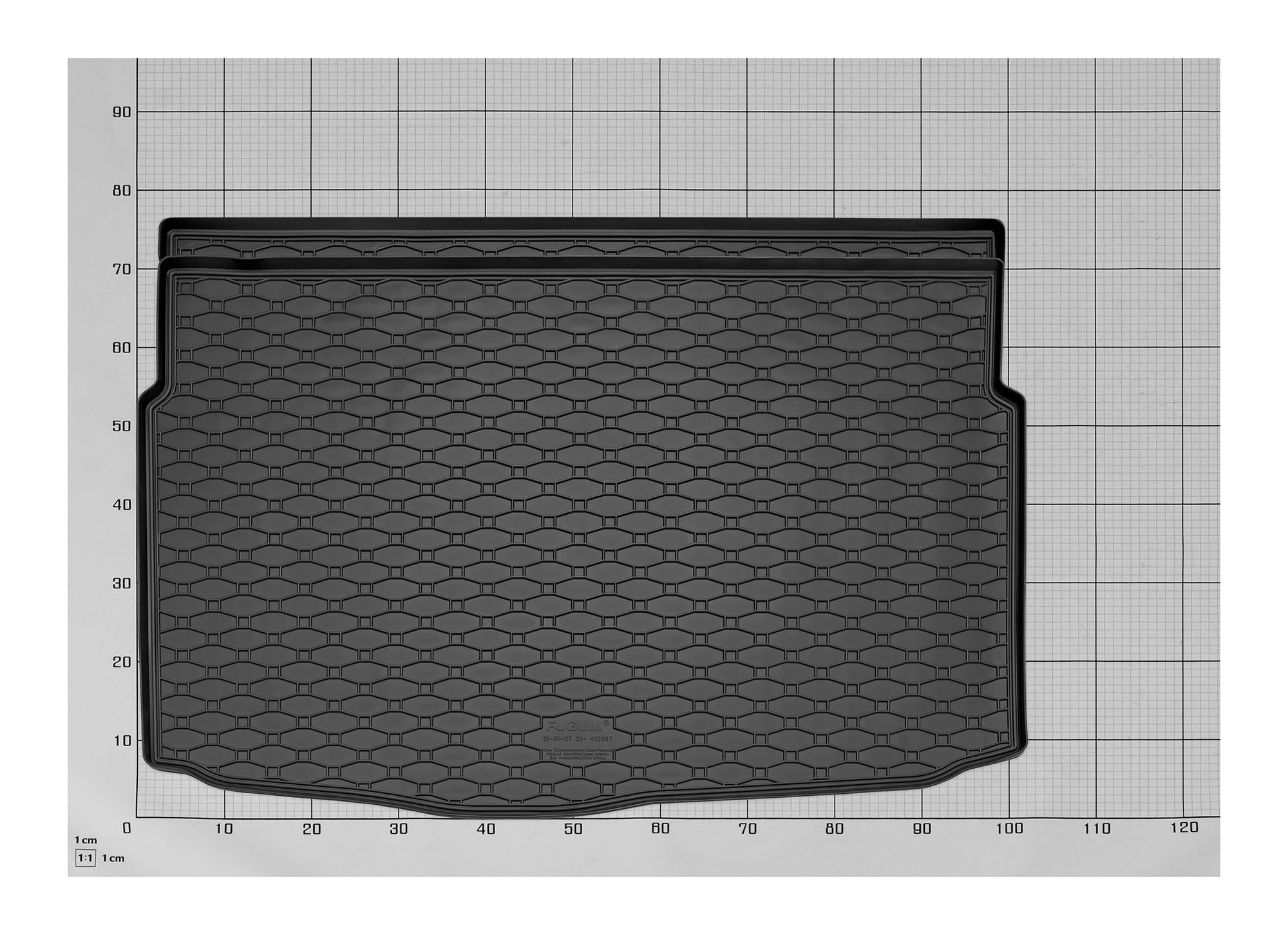 Mata do bagażnika firmy RIGUM wykonana jest na podstawie precyzyjnego skanu 3D powierzchni komory bagażnika, doskonale zabezpiecza fabryczne poszycie tapicerskie samochodów.