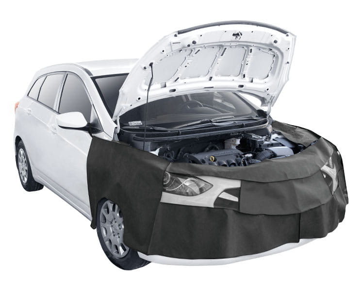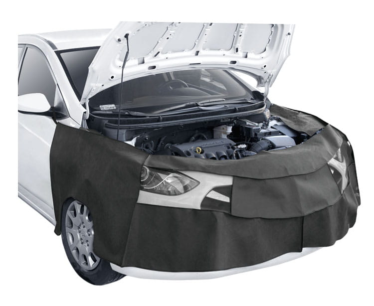 Pokrowiec ochronny Maximus dla mechaników samochodowych chroni przód naprawianego auta przed porysowaniem i zabrudzeniem. Pokrowiec ochronny wykonany jest z olejoodpornej, grubej włókniny (Spunbond) i gęstej sitaki w miejscu świateł samochodu. Pokrowiec jest łatwy i bezpieczny w montażu (mocowanie za pomocą haków pokrytych miękkim tworzywem).