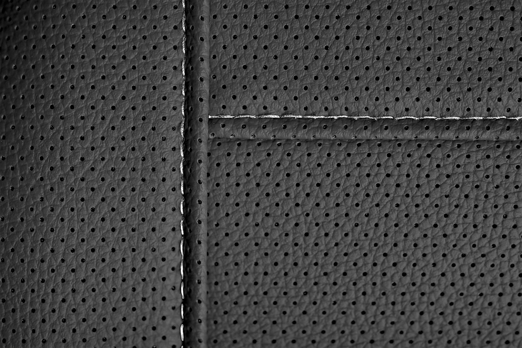 Materiał: Wentylowana eko-skóra (tylne części pokrowców oraz zagłówki wykonane są z czarnego, elastycznego materiału)
