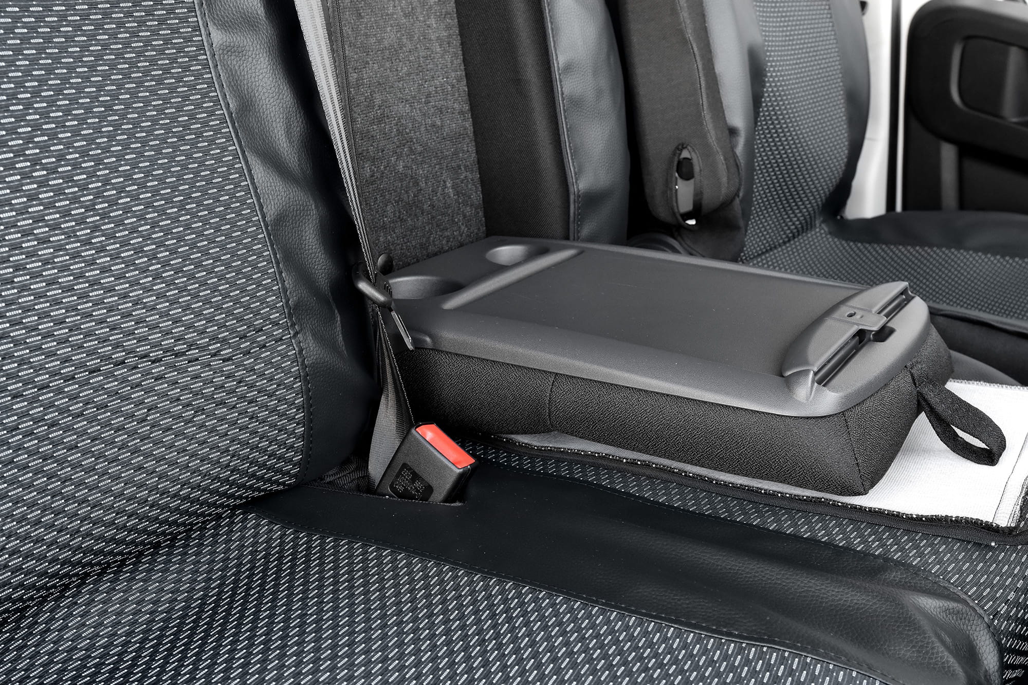 fotel pasażerów 2 miejsca: siedzisko w całości, oparcie w całości z otworem na opuszczany stolik, 2x zagłówek