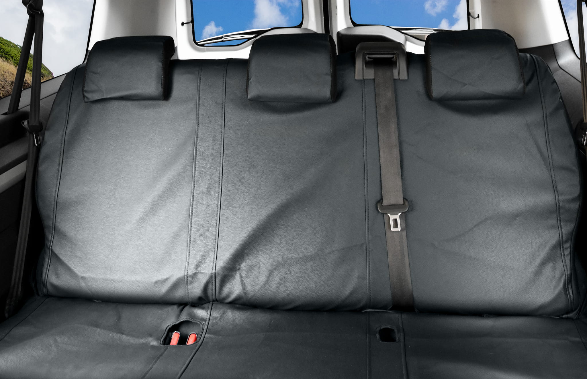 3. rząd: kanapa 3-miejscowa oparcie i siedzisko w całości (1x pokrowiec na siedzisko, 1x pokrowiec na oparcie, 3x zagłówek)