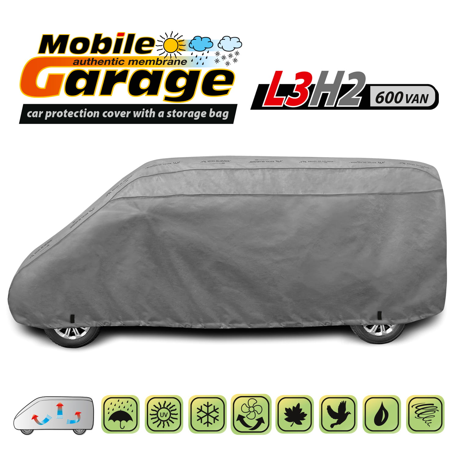 - Pokrowiec osłania samochód przed deszczem (także kwaśnym), śniegiem, szronem, słońcem (promieniami UV, nadmiernym nagrzewaniem), pyłem, ptasimi odchodami, liśćmi i sokiem z drzew.