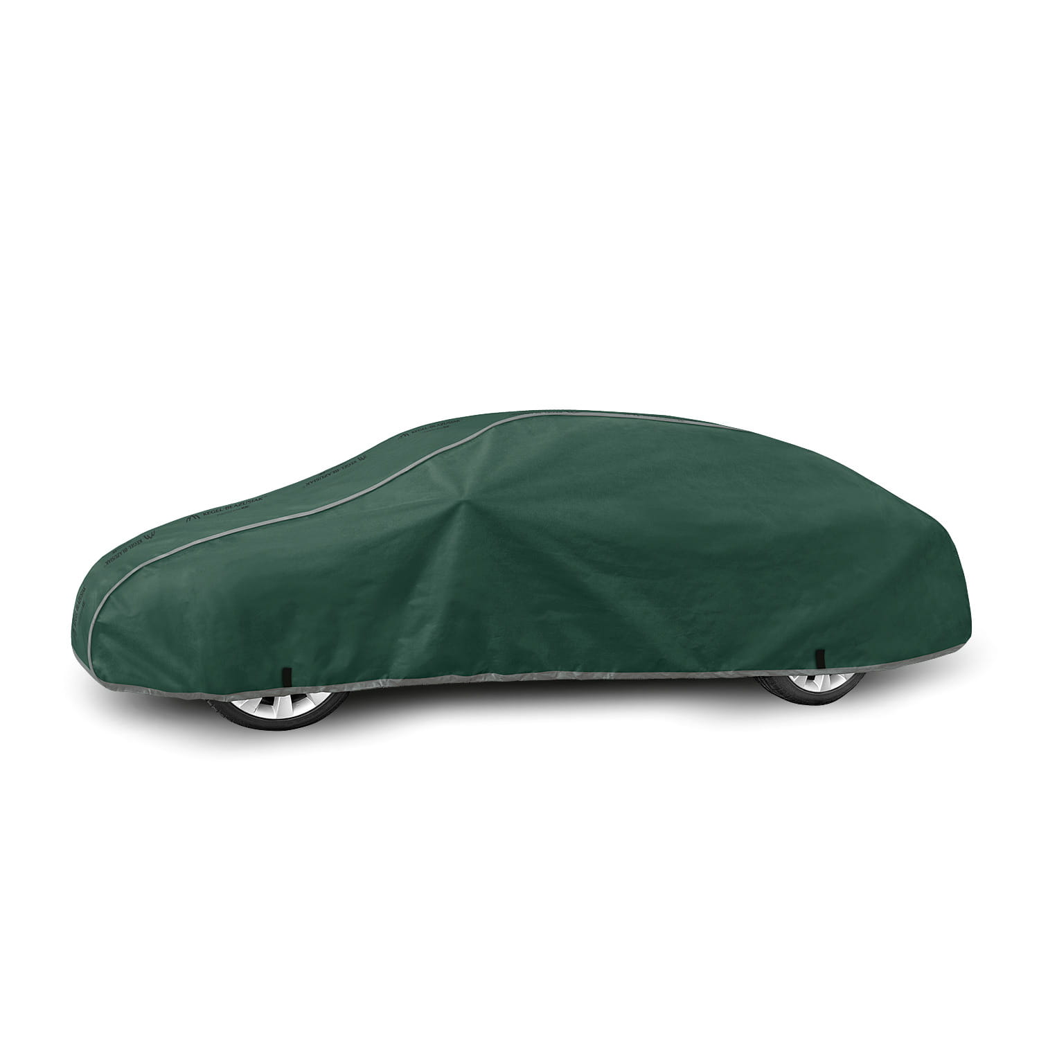 - Pokrowiec jest dobrze dopasowany, pewnie mocowany za pomocą ściągacza z linką wokół całego pojazdu.