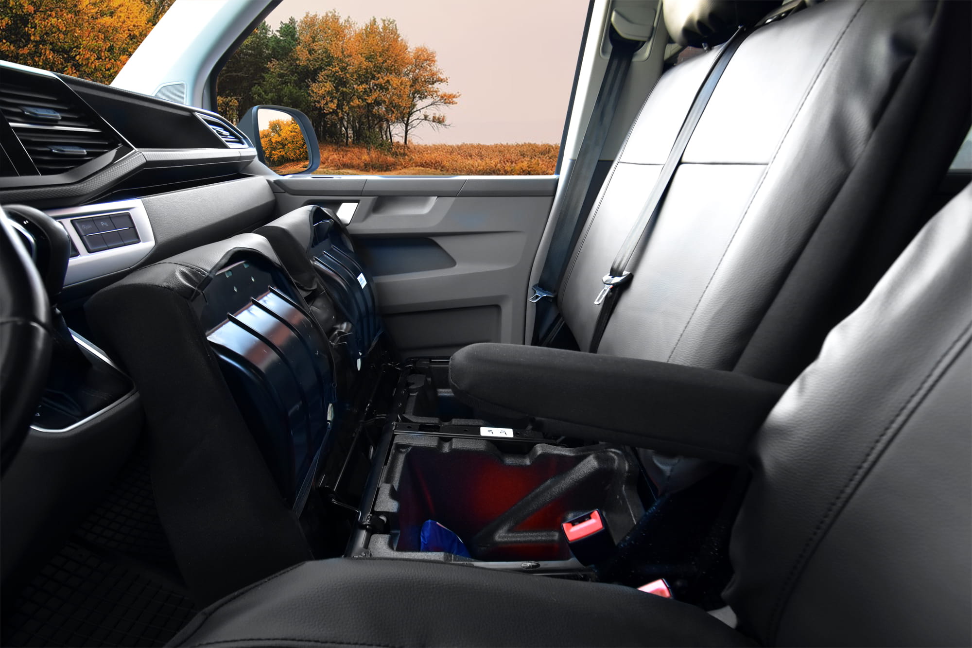 VW T5 Transporter/Caravelle/Multivan (od 2003) Pokrowce dedykowane MEISTER (czarna eko-skóra)