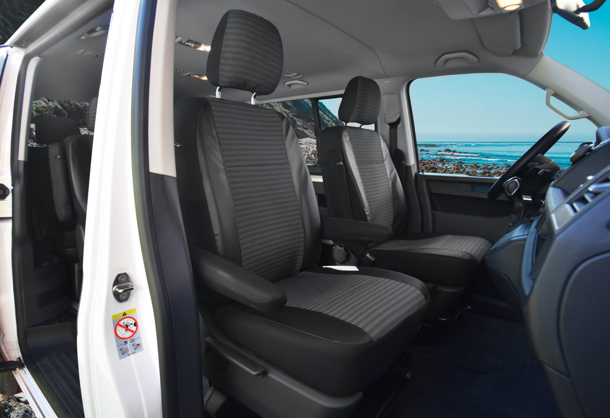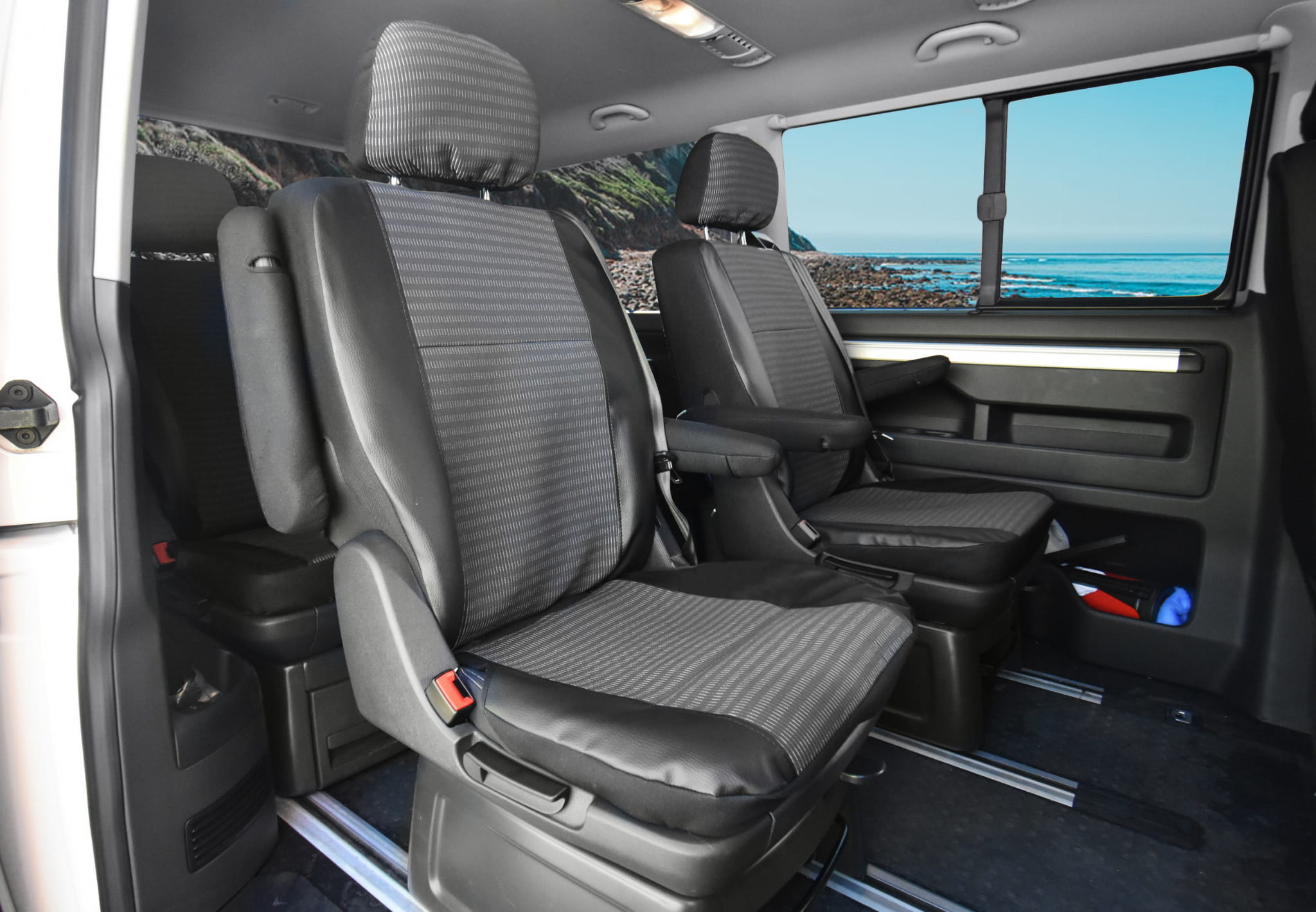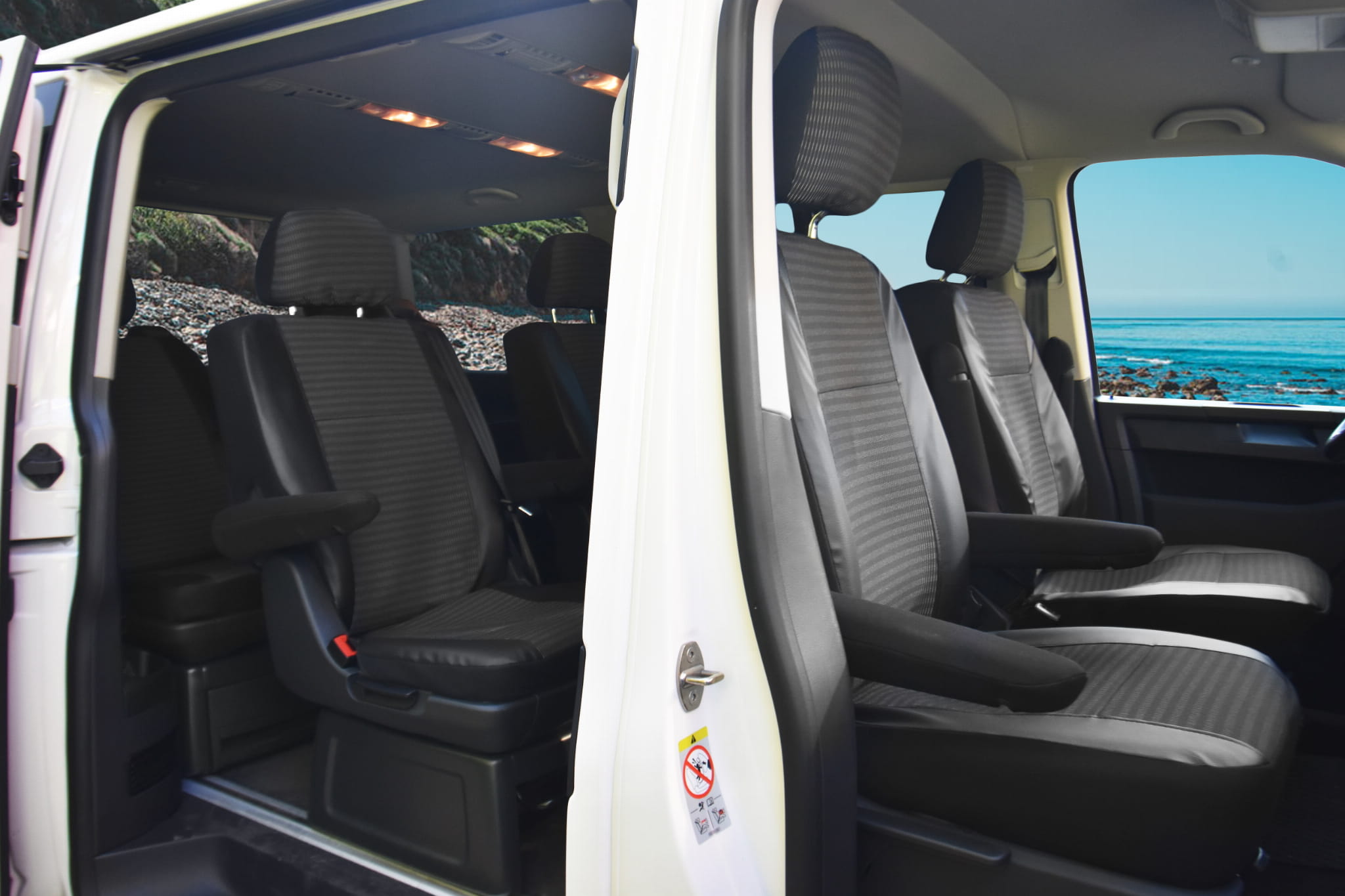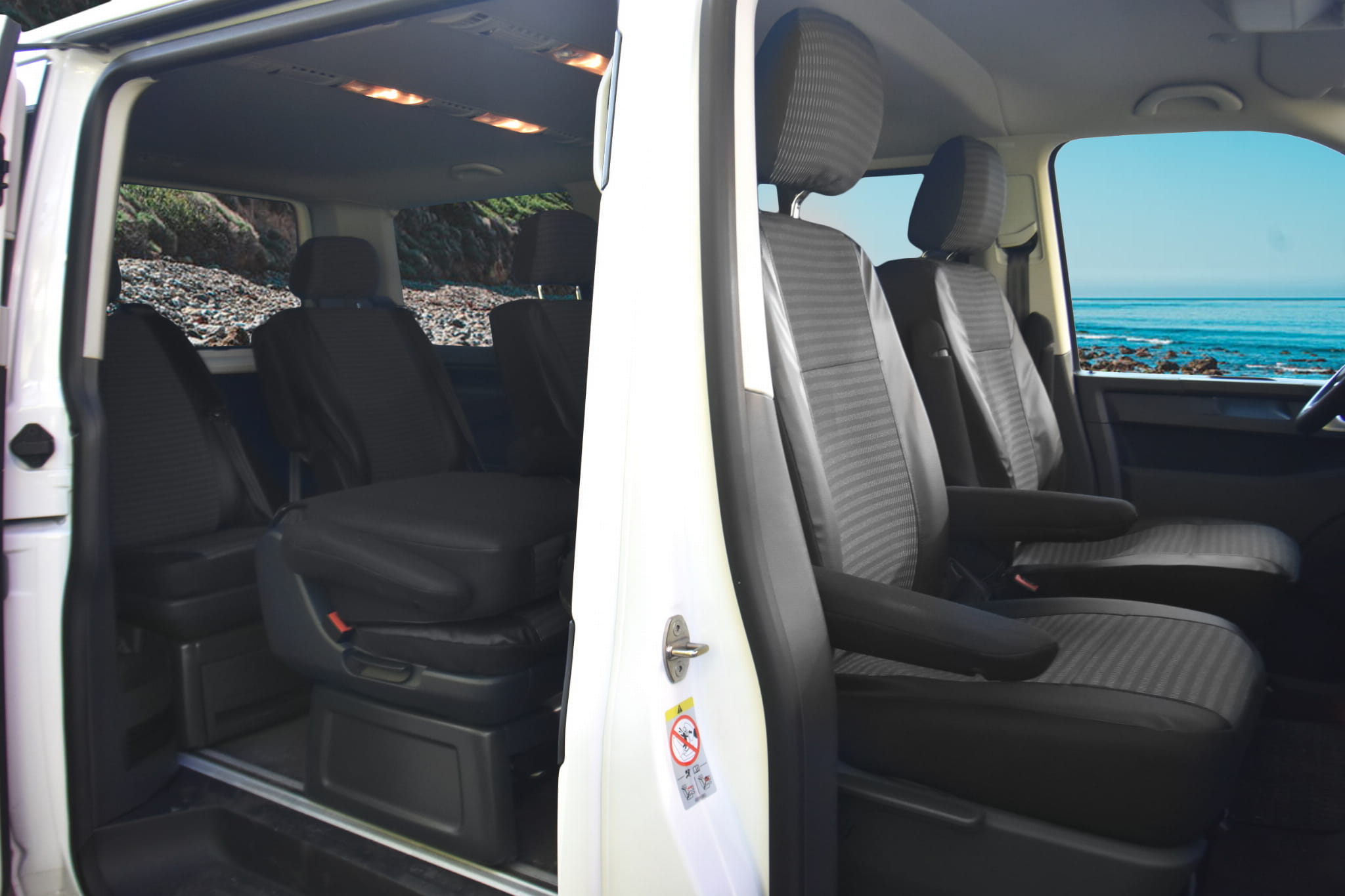 VW T6 Caravelle (od 2015-) Pokrowce dedykowane VIVA (eko-skóra i materiał tapicerski)