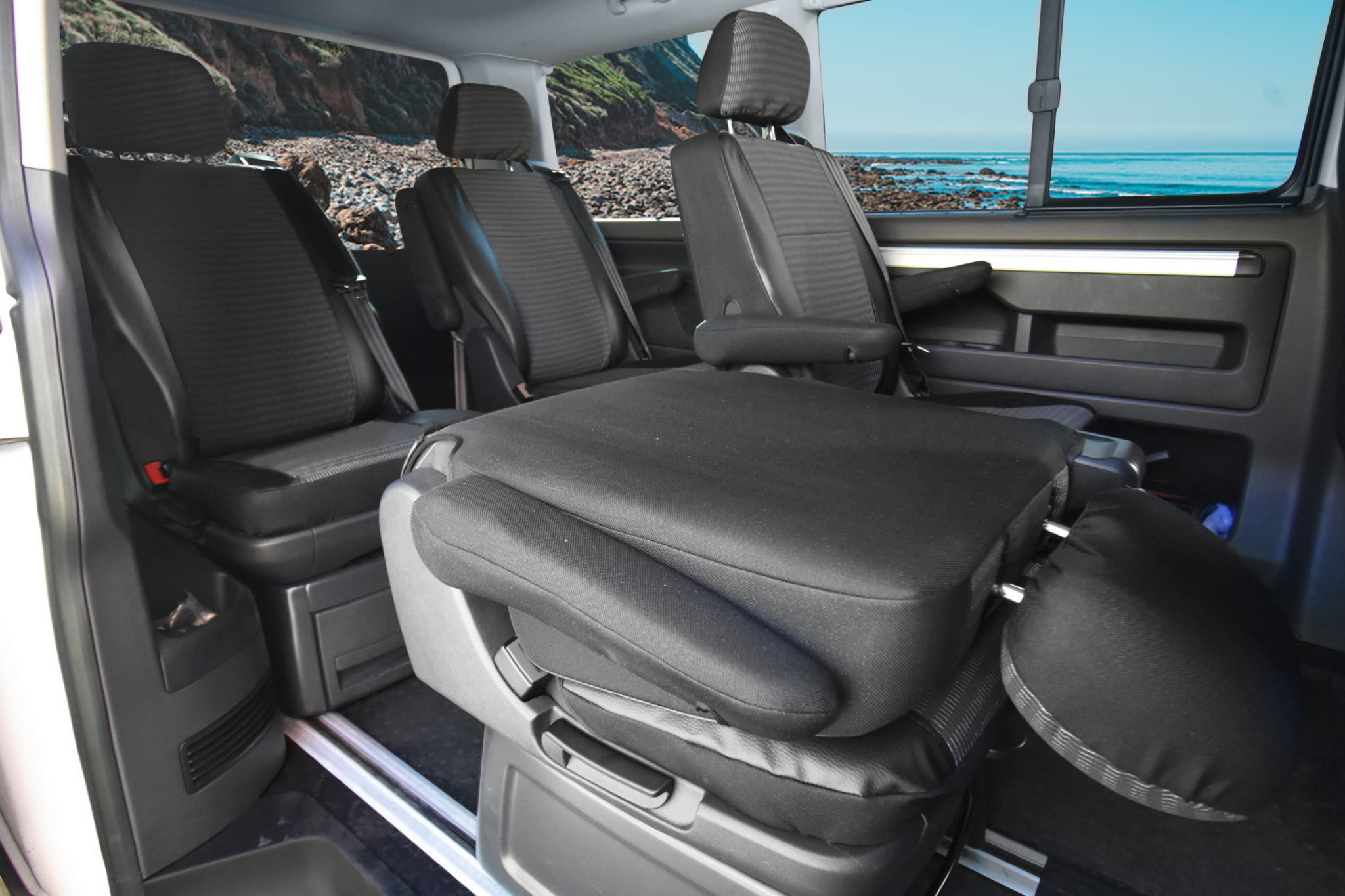 Produkt jest wyjątkowy ze względu na idealne dopasowanie do wszystkich funkcjonalności foteli, takich jak: ruchome siedzisko pasażera, (możliwość unoszenia, odchylania), ruchomy podłokietnik kierowcy, odchylany stolik. Zawiera również otwory na zagłówki oraz otwór na pas pasażera w oparciu kanapy.