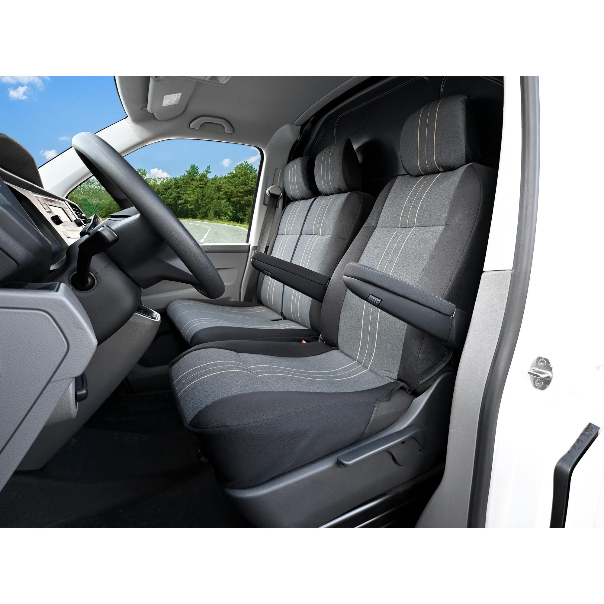 kanapa pasażerów: siedzisko i oparcie w całości, 2 x zagłówek, haczyki montażowe