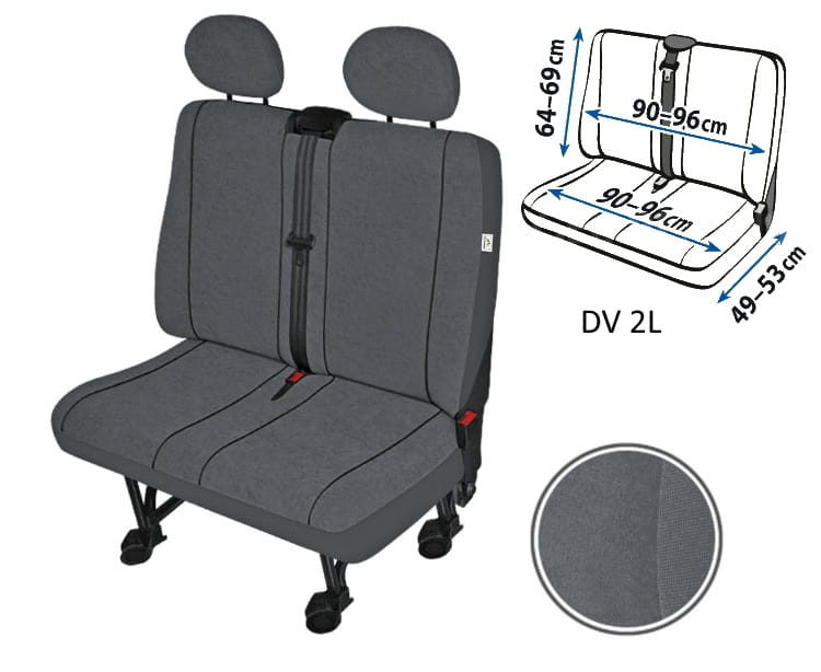 I rząd: pokrowiec kierowcy: siedzisko, oparcie, zagłówek, haczyki montażowe. Pokrowiec pasażera 2 miejsca: siedzisko, oparcie, 2 zagłówki, haczyki montażowe.