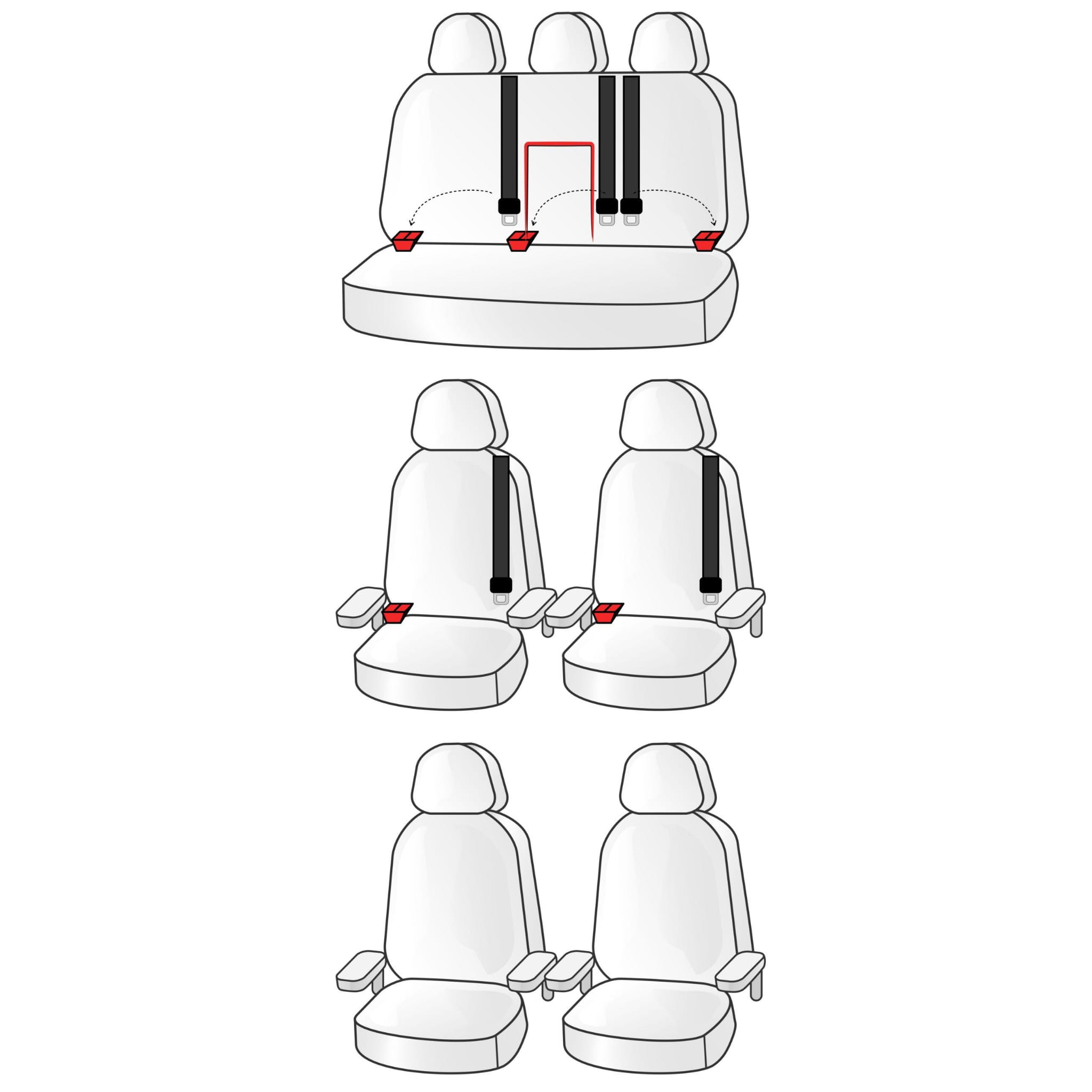 fotele pasażerów: pokrowce przystosowane do podłokietników zamontowanych w bocznej części oparcia, zagłówek. Haczyki montażowe.