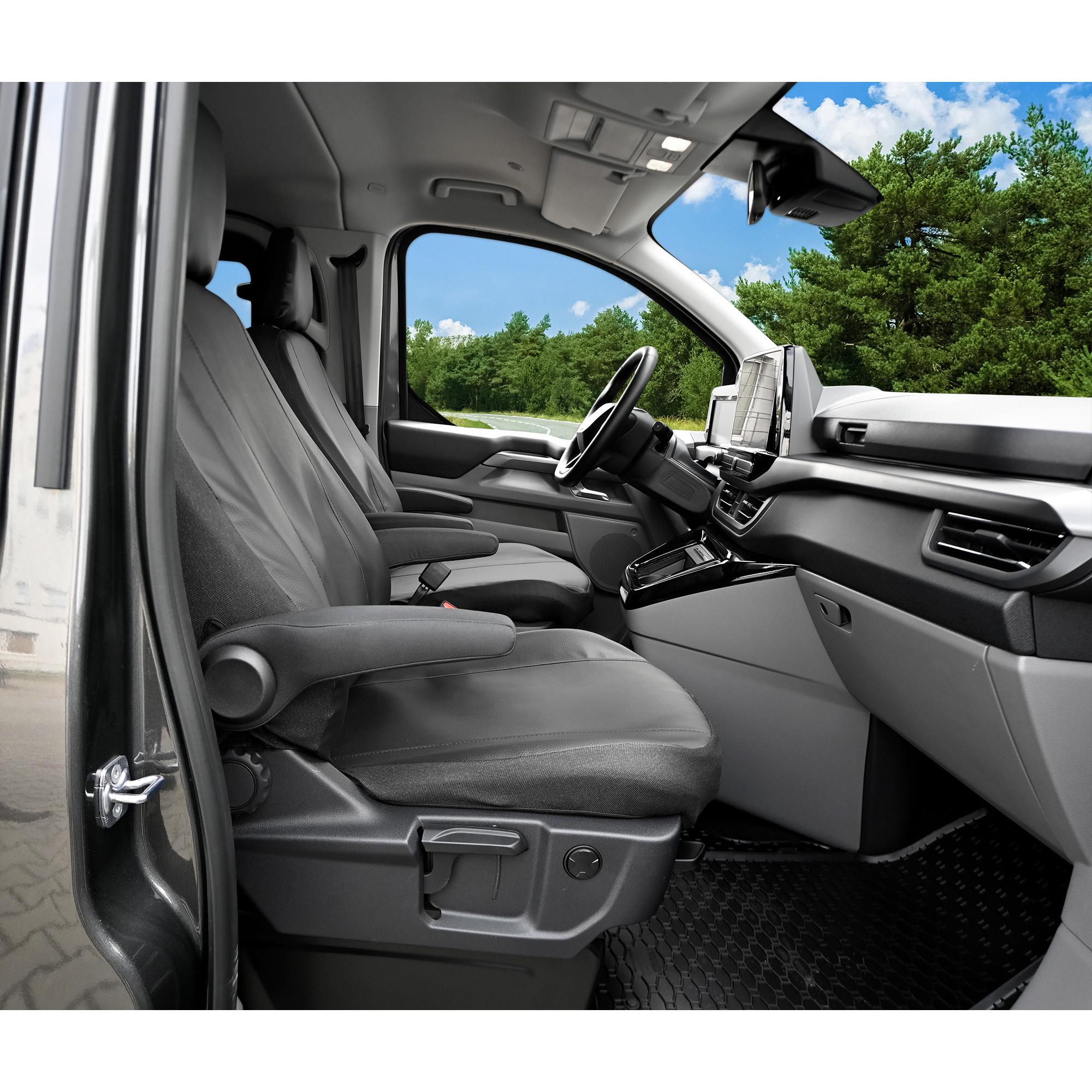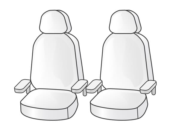 Pokrowce na dwa przednie siedzenia z otworami na podłokietniki dla kierowcy i pasażera, pasują również do siedzeń bez podłokietników. Pokrowce po założeniu dają dostęp do kieszeni w tyłach siedzeń.